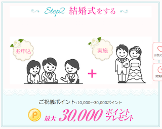 よく見るとブライダルフェア・見学は「最大5会場」って書いてあるので、3000ポイントx5、つまり15000ポイントゲットできるってことです。
